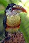 The curl-crested araçari is a species of toucan endemic to the Amazon River Basin notable for the modified, curled feathers on its crown.